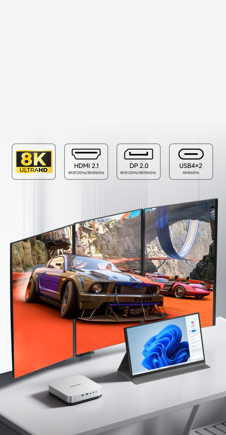 Achieve data transfer speeds of up to 40Gbps. It can transfer large amounts of data in a very short time, greatly improving the work efficiency of users who need to frequently transfer large files. Connect a high-performance graphics card via USB4, and the graphics processing capability is significantly improved, supporting higher-resolution output and multi-monitor display.