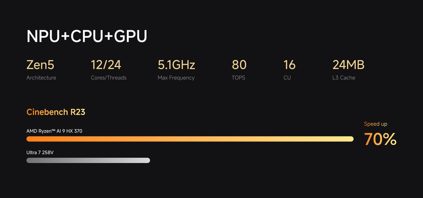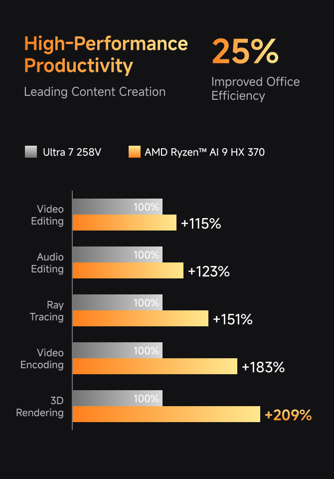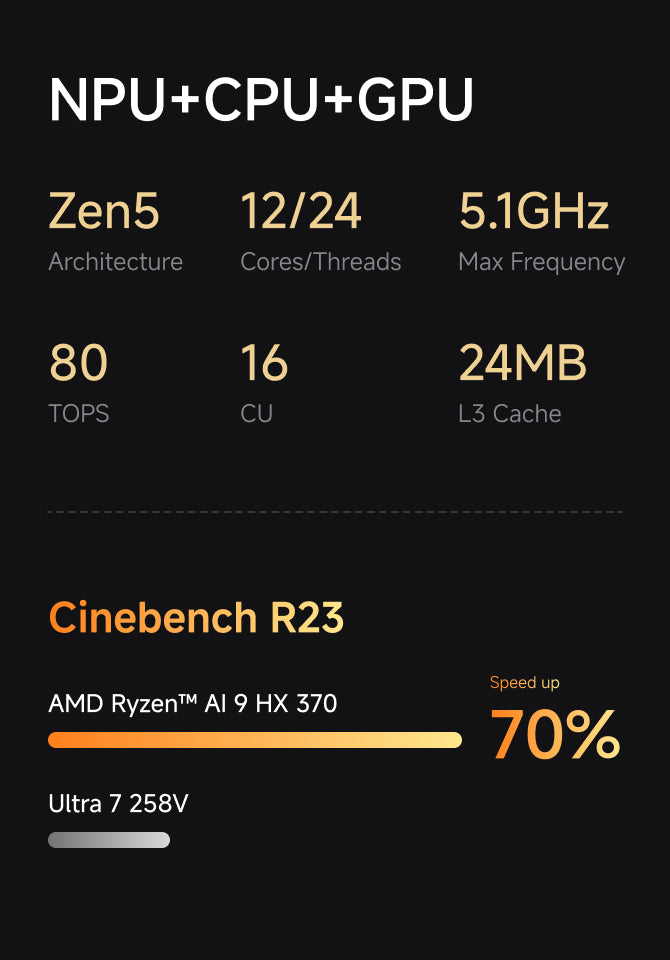 Powered by the cutting-edge AMD Ryzen™ AI 9 HX 370 processor, it provides a good balance of performance and energy efficiency, allowing you to run games and creative applications with ease. Built-in artificial intelligence enhancements, experience next-generation AI technology, accelerate multitasking, significantly improve productivity, and enhance team collaboration.