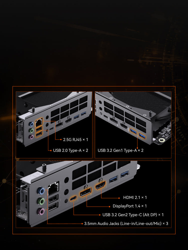 Storage Type:2×M.2 2280 NVME SSD Slot (up to 4TB)(PCIe4.0x4)