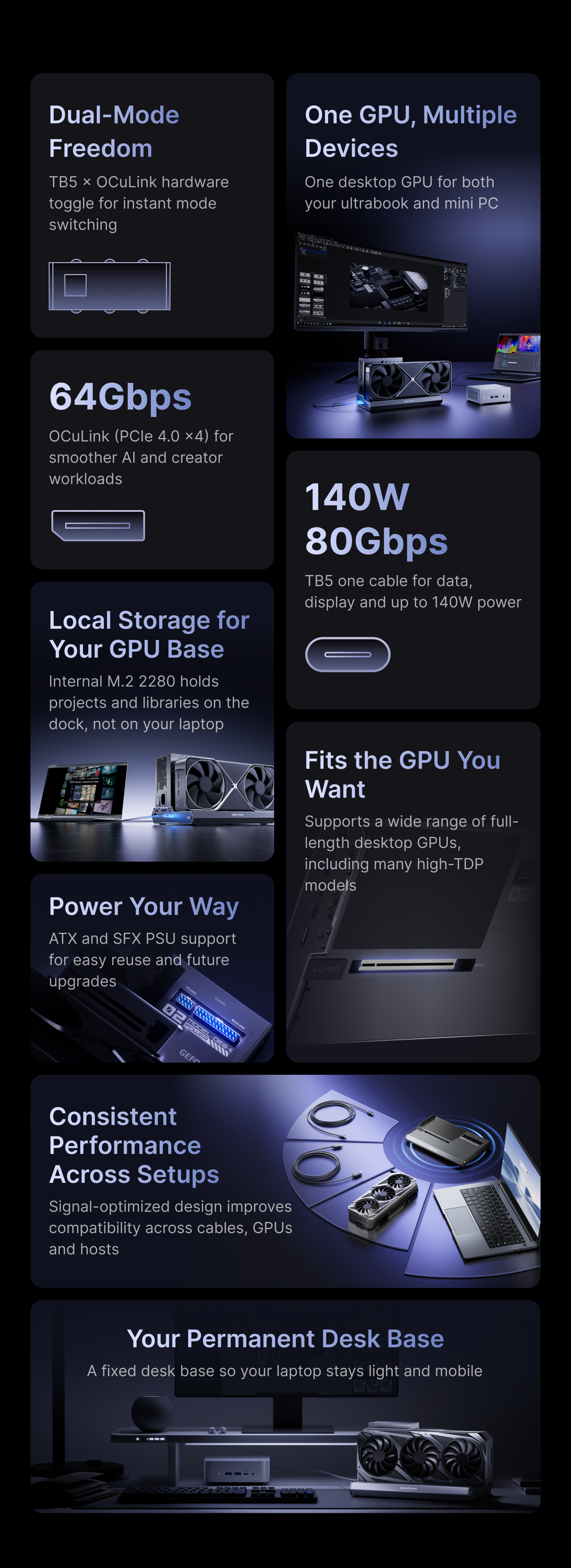 TB5 link, you just plug in once and your entire desk setup is ready for work or play.
