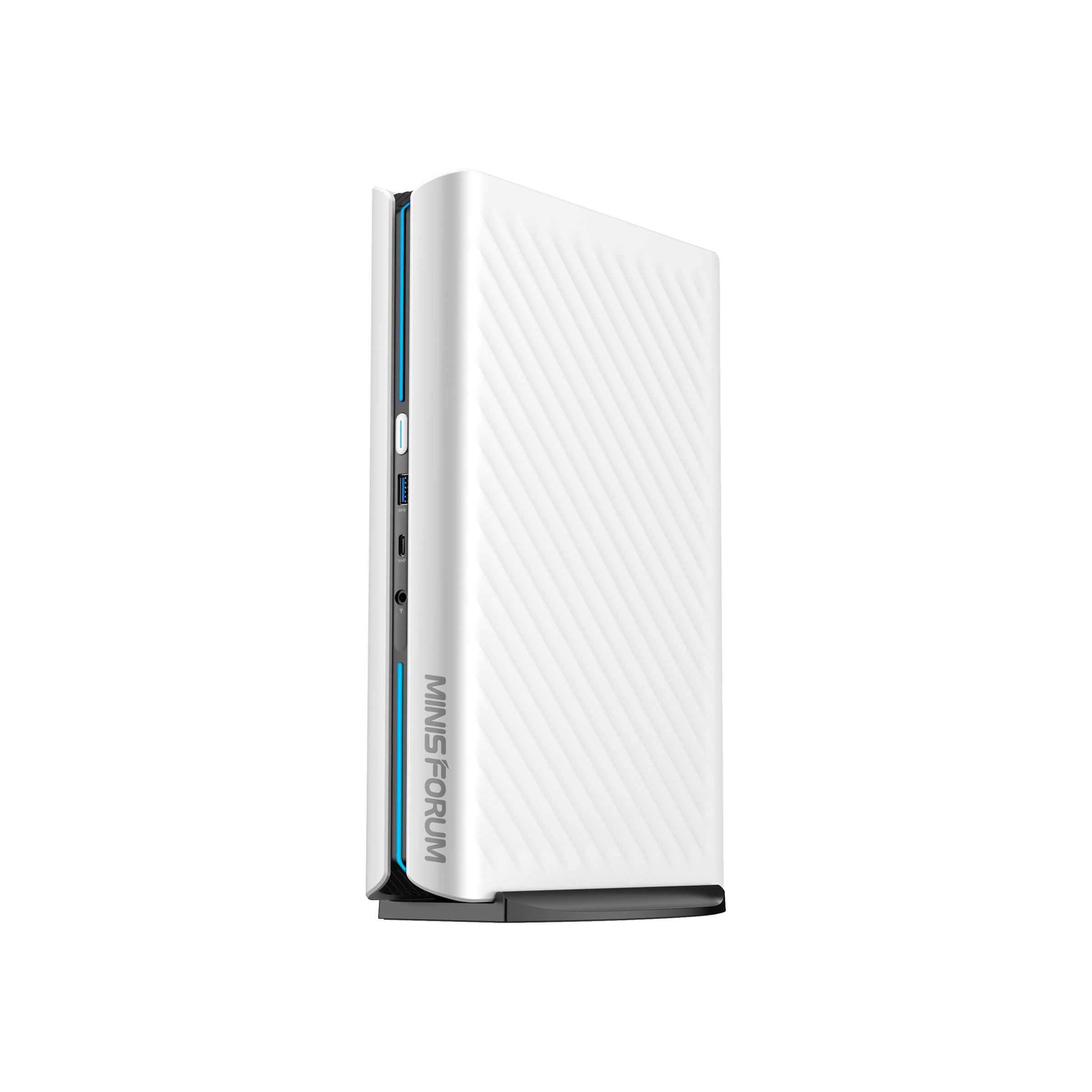 A 3.8L minimalist tower in black and white, accented by a wave-textured panel and RGB lighting. More than just a PC, it's a centerpiece for any space, whether placed in your living room or on your studio desk