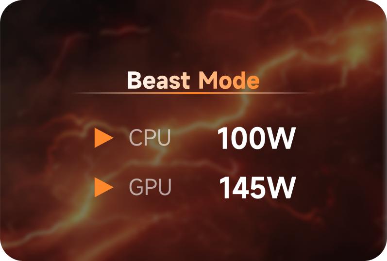 The GPU sustains 145W while the CPU can push up to 100W, delivering a brutal total of 245W of performance that rivals high-end gaming laptops.