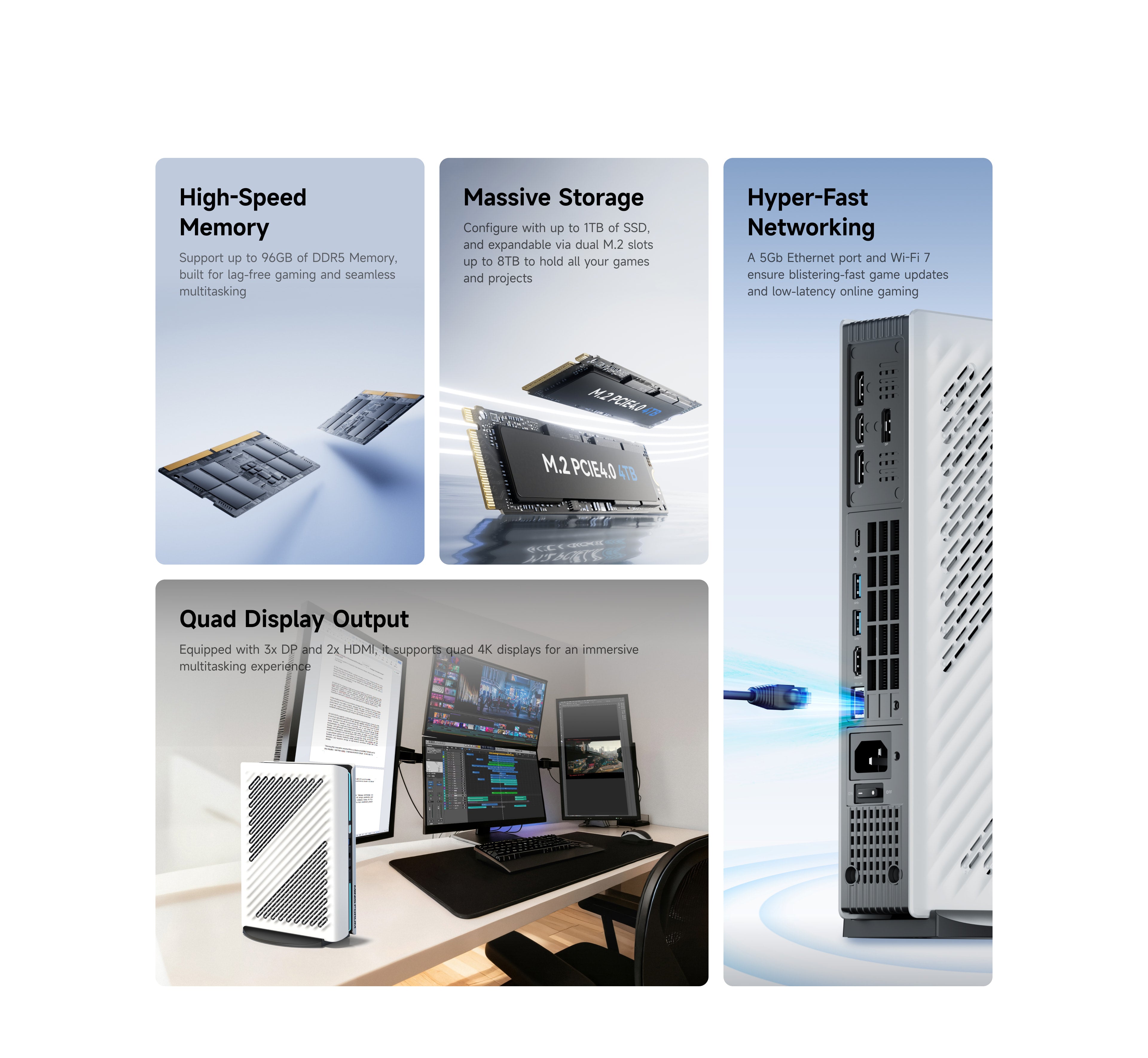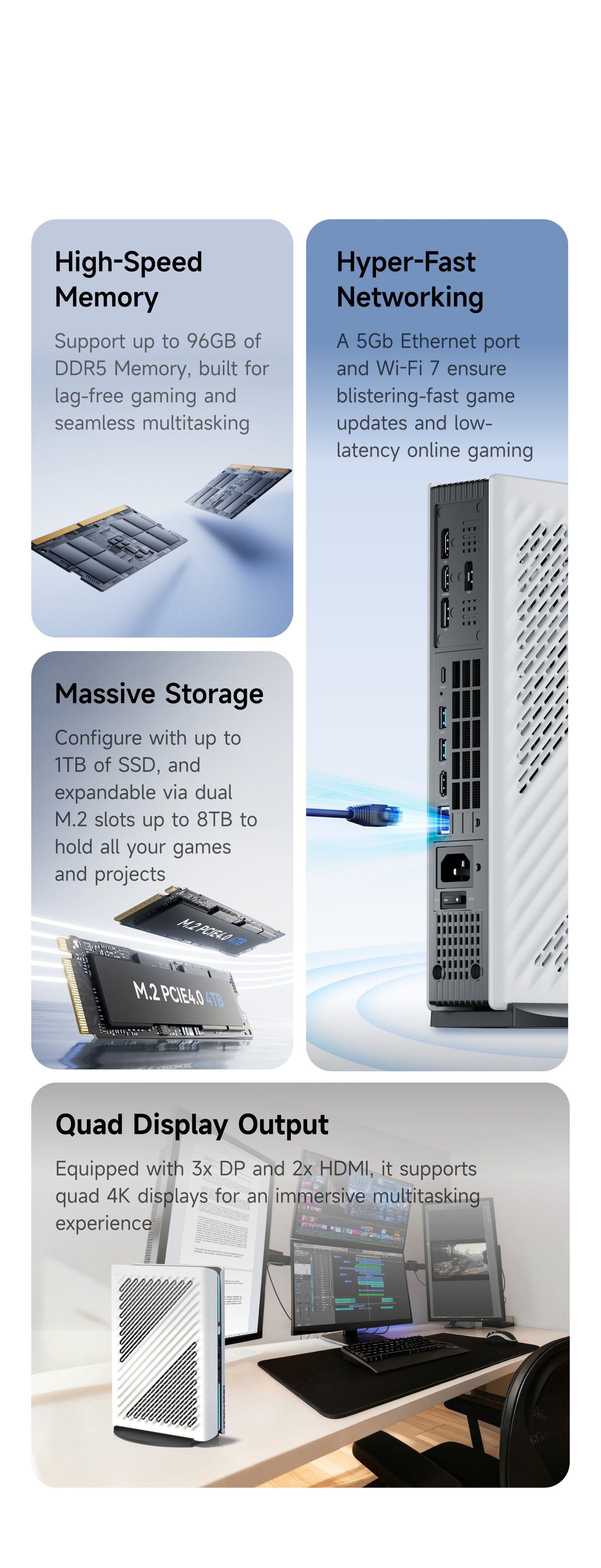 - 1×M.2 2230/2280 NVME SSD Slot (up to 4TB)(PCle4.0x4)