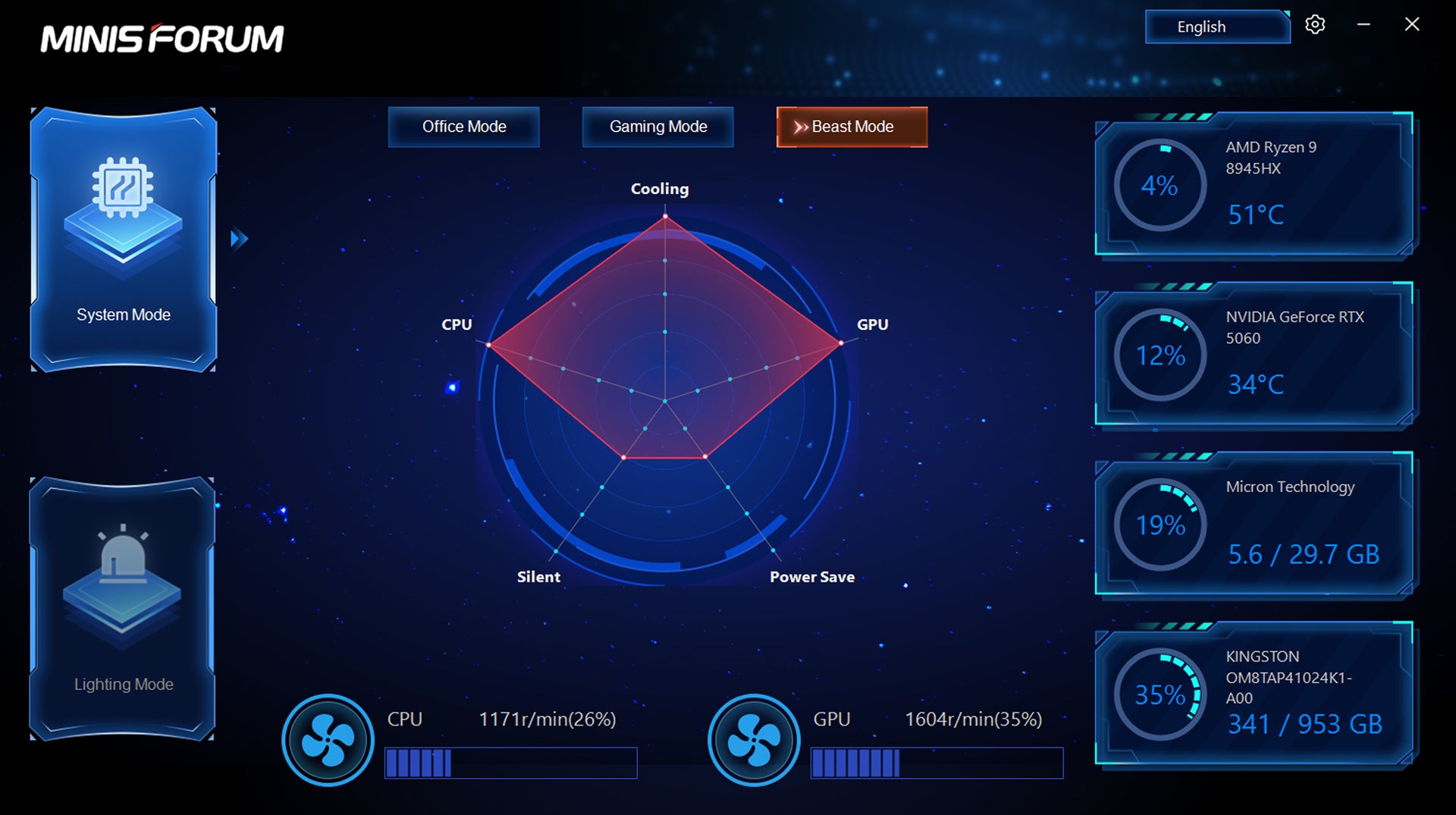 One-Click mode switching between Beast, Gaming, and Office mode for instant adaptation to any task