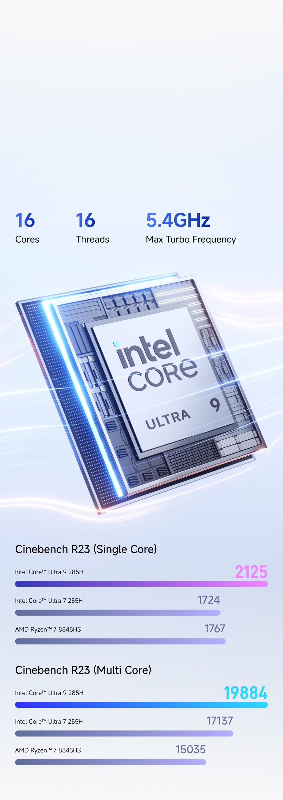 - Intel® Core™ Ultra 9 Processor 285H,16C/16T