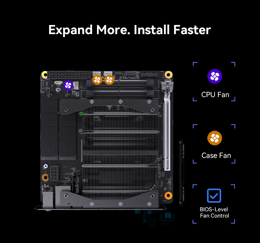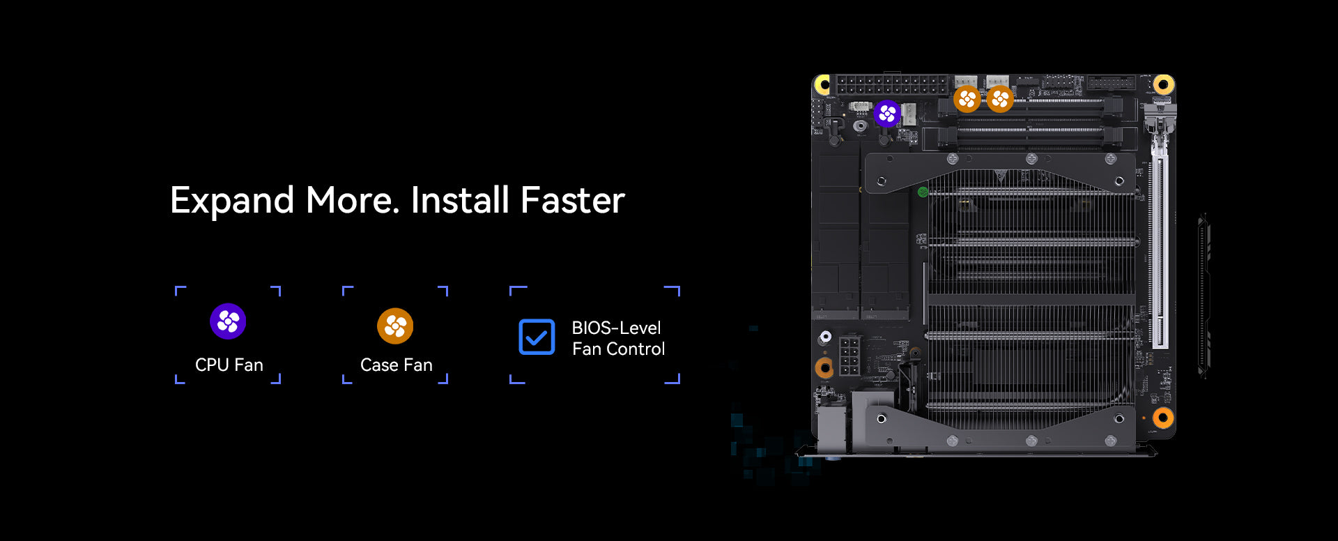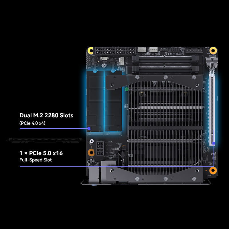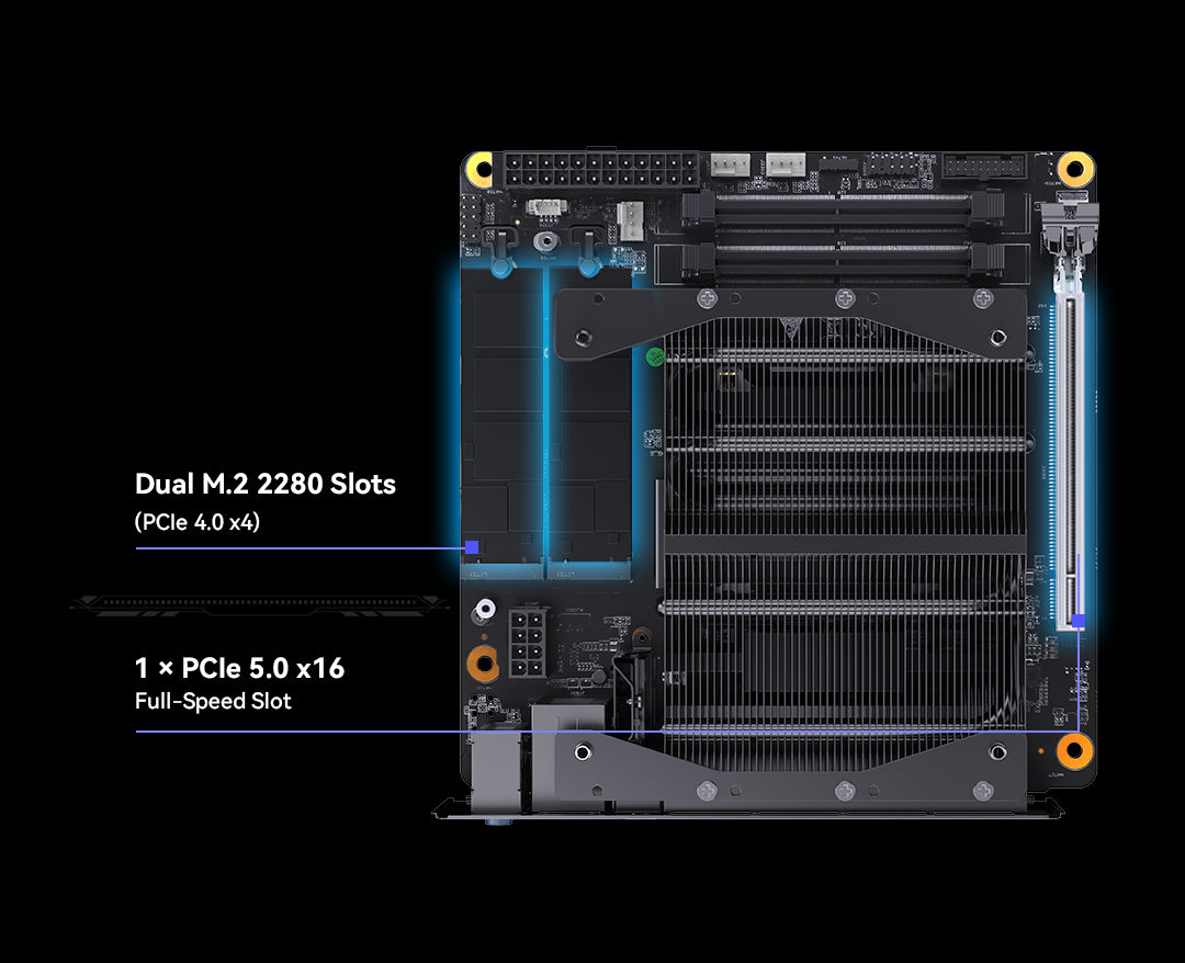 dual PCIe4.0 M.2 slots.This MoDT board features an integratted advanced cooling system, ensuring that both