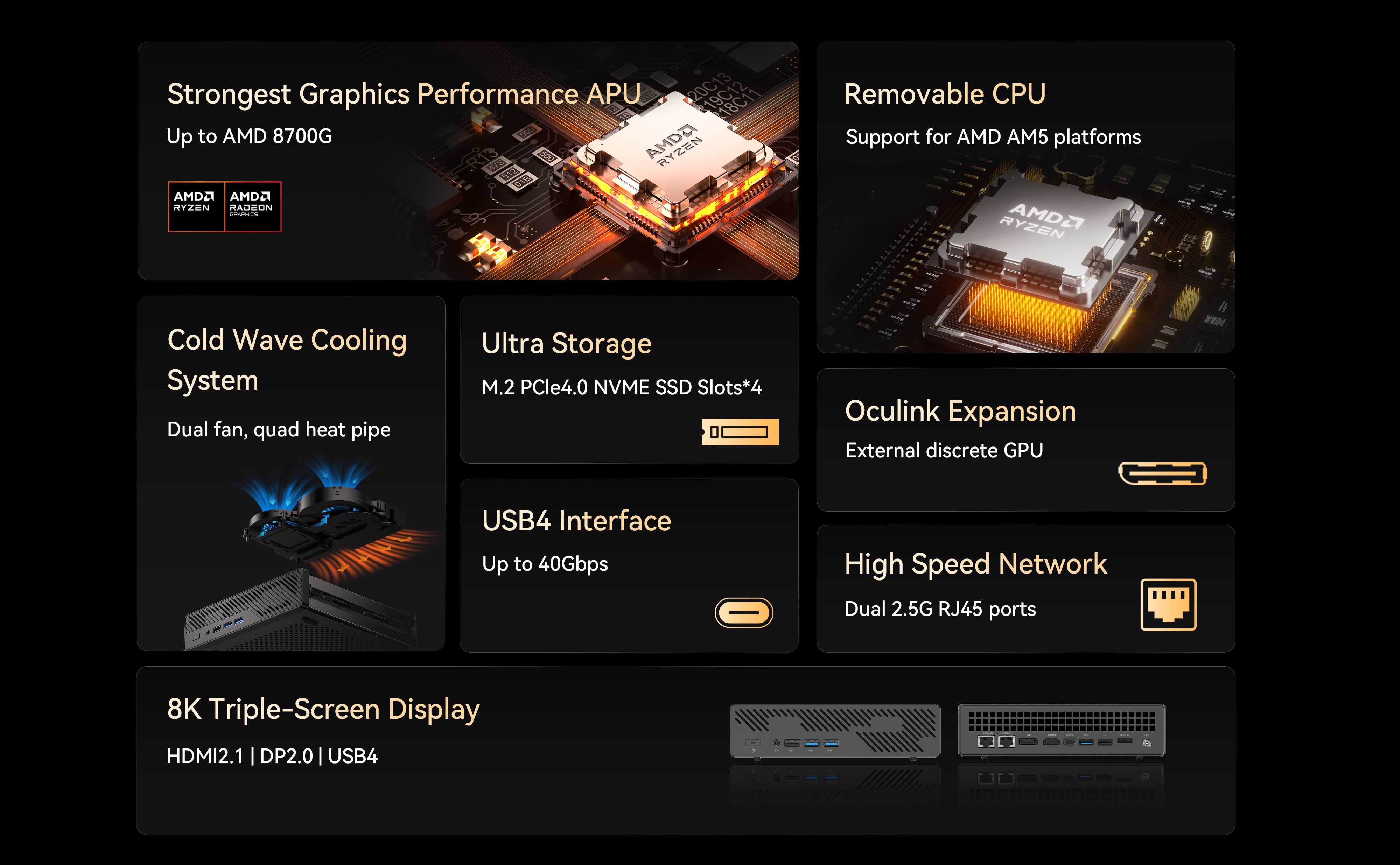 MS-A1 features a built-in dedicated NPU unit, offering a maximum NPU computing power of 16TOPS, making it the first