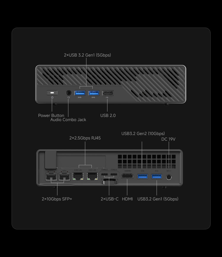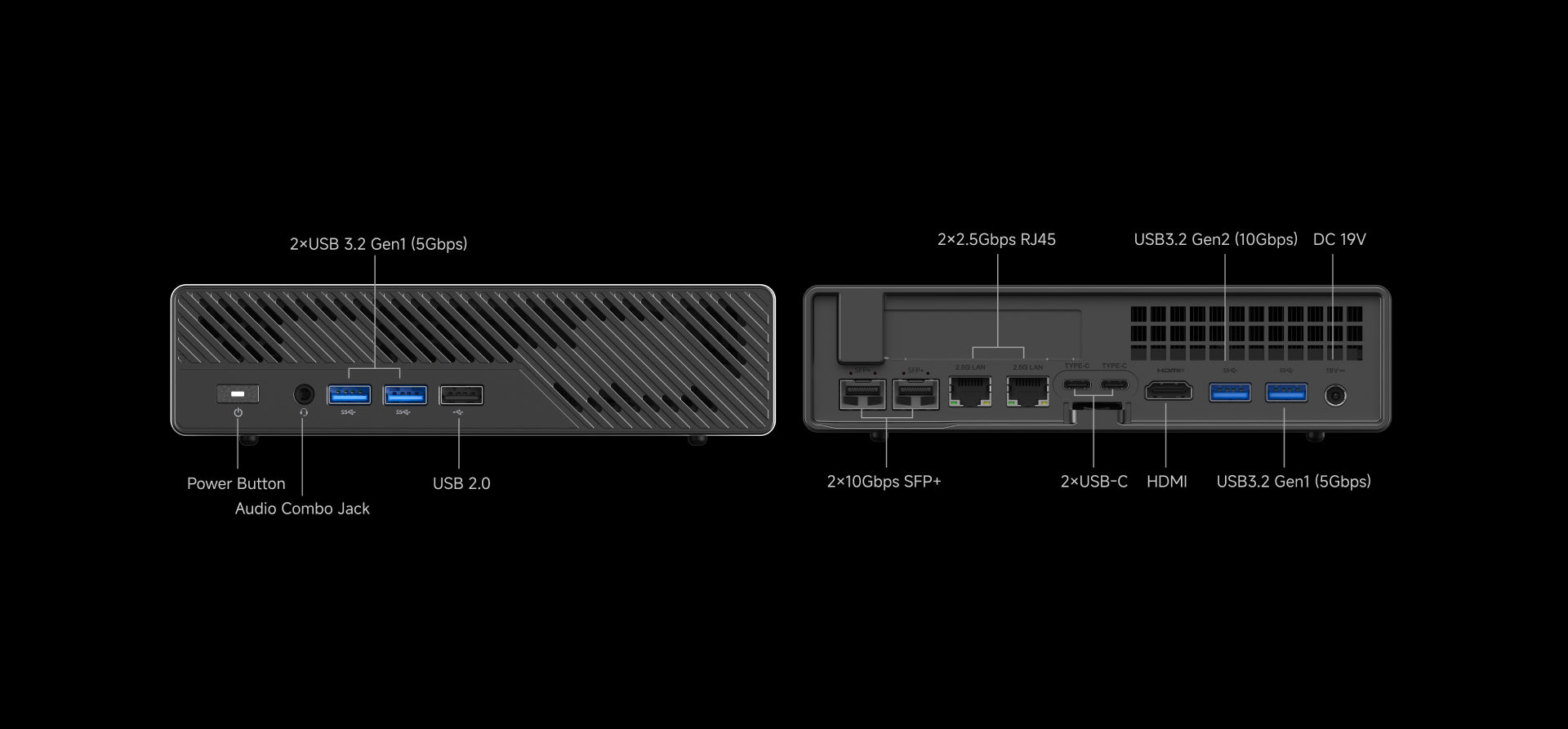 - Dual 10Gbps SFP+ Lan & 2.5G RJ45 Lan Ports | WIFI 6E & BT 5.3