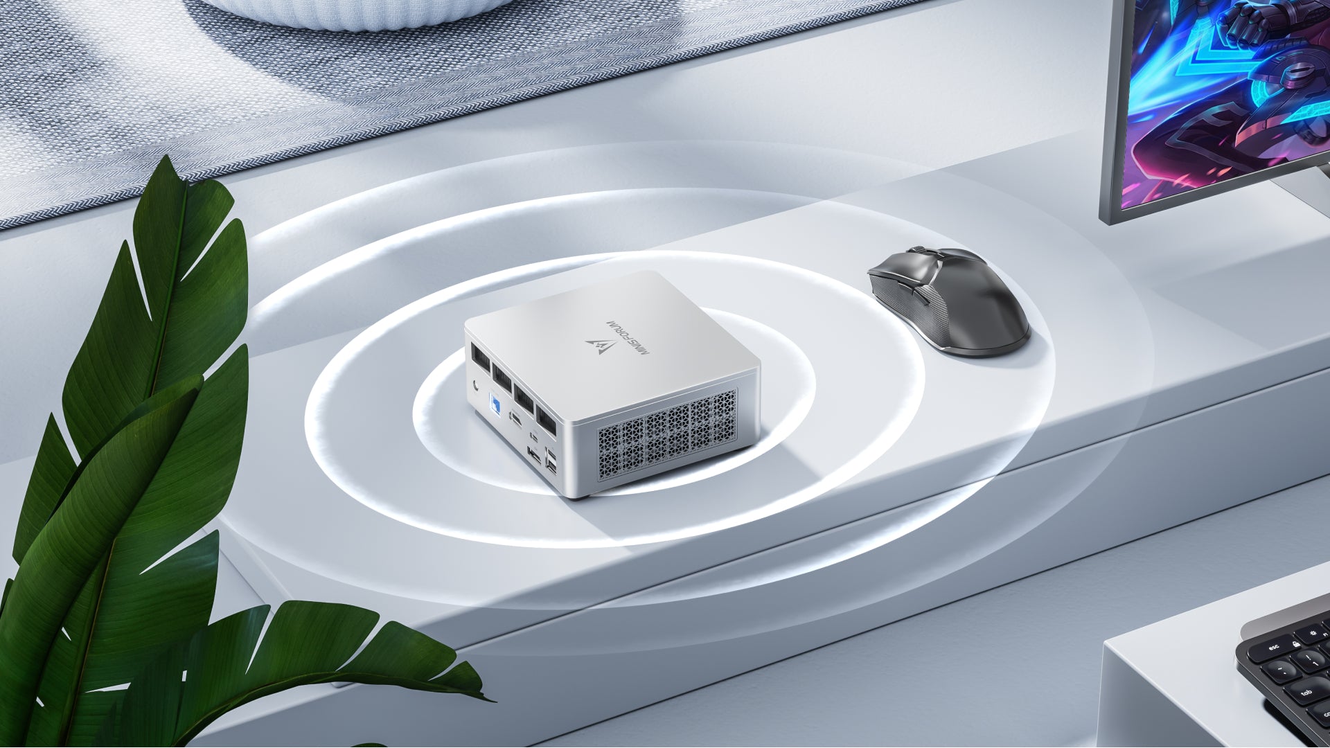 Minisforum UM750L Slim Featuring AMD Ryzen™ 5 7545U Processor — Powerful Performance in a Compact Mini PC with 6 Cores and 12 Threads for Seamless Multitasking and Enhanced System Efficiency.